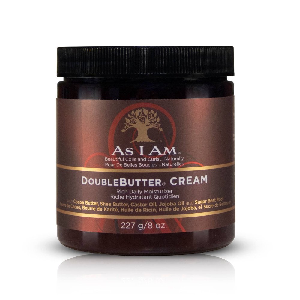 Rich Daily Moisturizer, DoubleButter Cream, Classic. With cocoa butter, shea butter, castor oil, jojoba oil and sugar beet root. Beautiful coils and curls - naturally. As I Am DoubleButter Cream is a rich blend of nature's finest butters and oils. It seals in moisture while providing hair with outstanding shine, manageability and softness.