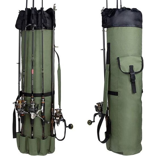 À propos de cet article . Grande capacité : le support de sac pour canne à pêche dispose de 2 compartiments principaux et de 4 poches latérales, il peut facilement contenir vos cannes à pêche, moulinets, leurres, chaise et autres articles de pêche.